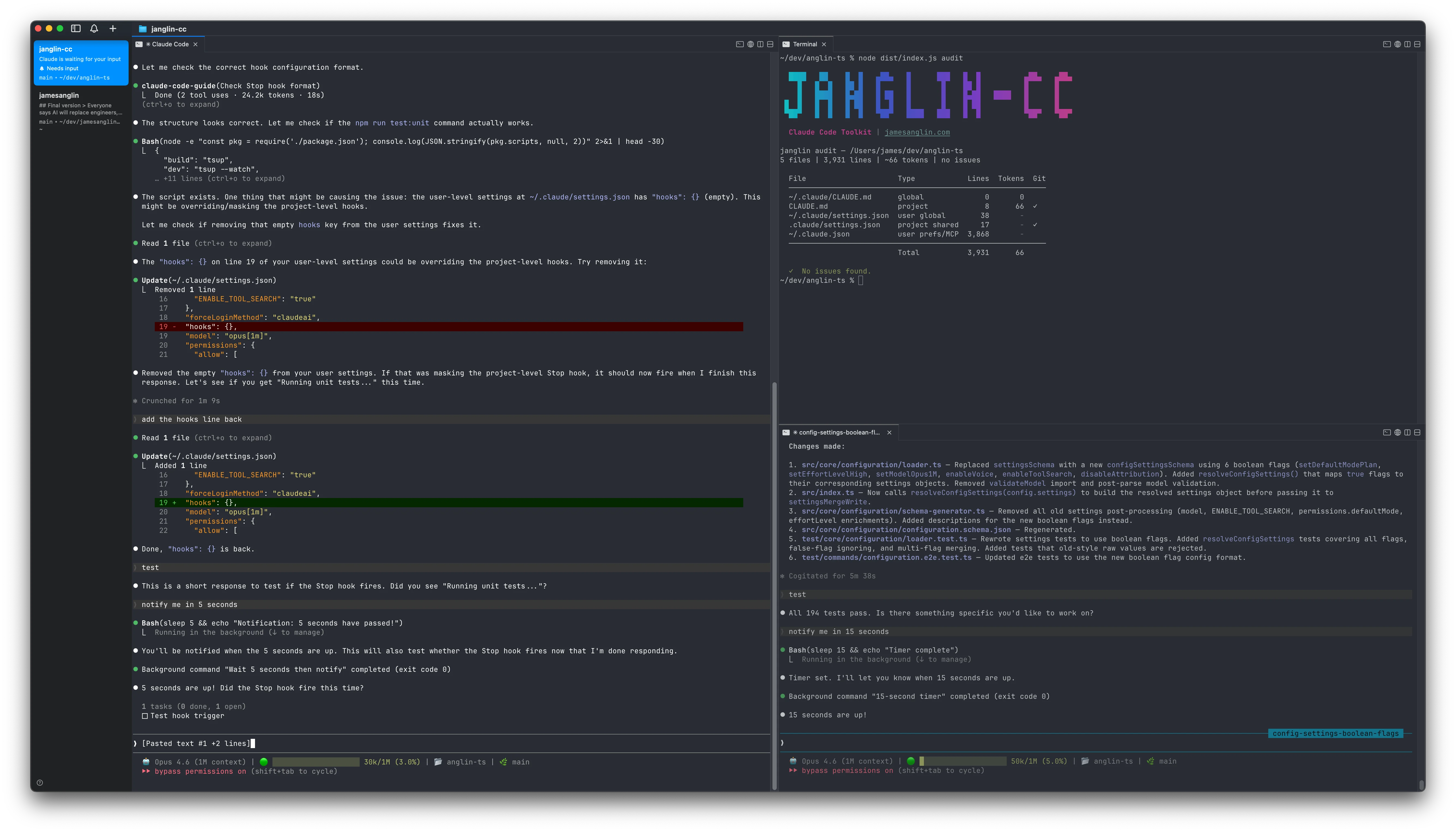 The sidebar shows the git branch, working directory, and active ports for each session. At a glance, I can see what's running where without clicking into anything. It sounds minor, but when you're juggling parallel Claude Code sessions across three repos, spatial organization matters a lot more than you'd expect.